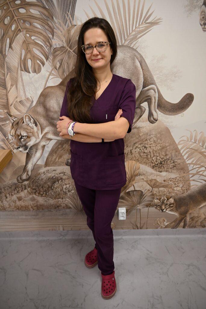 Jest doświadczoną internistką, umiejętności zdobywała w kilku krakowskich klinikach oraz podczas licznych praktyk zagranicznych. Jej weterynaryjną pasją jest hematologia.